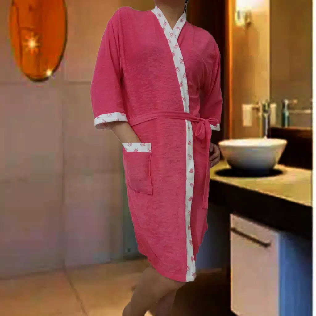 HANDUK MANDI DEWASA POLOS KOMBI MANSET PUTIH 4 WARNA/HANDUK MANDI WANITA/KIMONO HANDUK