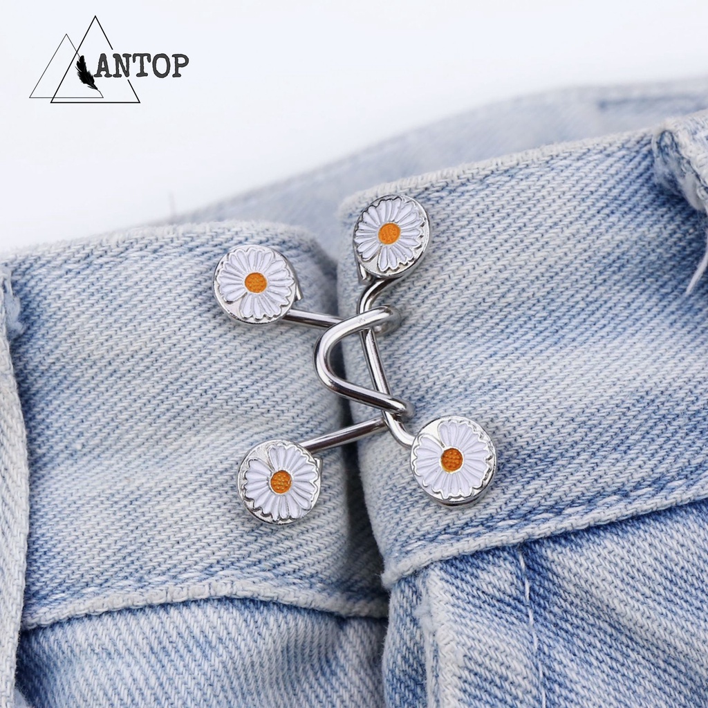 Kancing Jeans Logam Simple Adjustable Kancing Pengait Celana Panjang Jeans Denim Desain Bunga Daisy Warna Putih Kait Pengecil Lingkar Pinggang Celana Jeans Model Bisa Dilepas