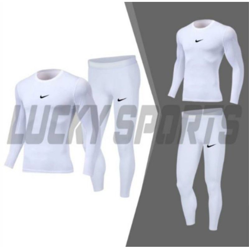 Harga PAKET BASELAYER MANSET PUTIH / setelan stelan baju olahraga celana legging strech pria wanita